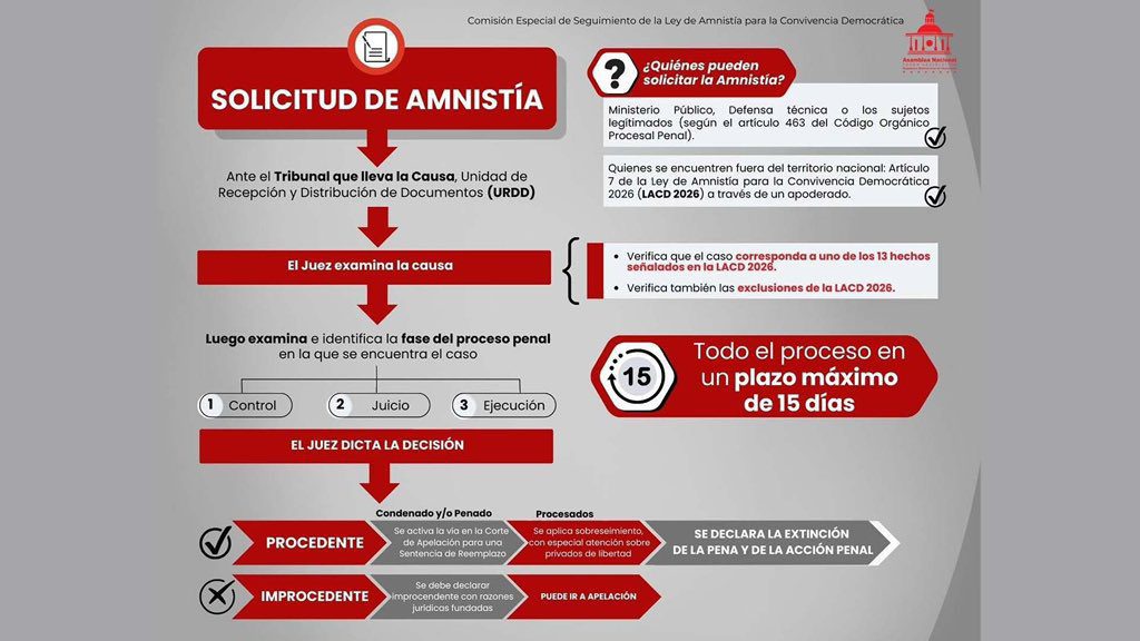 Al respecto, el diputado Stalin González hizo un llamado a órganos competentes a acatar con celeridad el proceso. “La amnistía no es un adorno ni un titular: es una pieza clave de un proceso mayor para reconstruir el país. Para que funcione, debe prerogarse la voluntad de todas las partes por contribuir a la convivencia democrática y la justicia”, señaló a través de su cuenta en X.